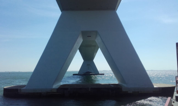 Vanaf juli 2018 opereerde ons team in een wel hele bijzondere werkomgeving: het water van de Oosterschelde. Vanaf een drietal werkschepen, repareerde, reinigde en conserveerde het team 46 pijlers van de Zeelandbrug over een lengte van ruim 5 km.
