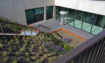 Karres+brands heeft het ontwerp voor de buitenruimte rondom het gebouw gemaakt, waaronder de openbare ruimte en een daktuin. In het tendertraject in 2013 hebben wij samengewerkt en kon ons team de landschapsarchitect technisch adviseren bij het ontwerp voor de terreininrichting.